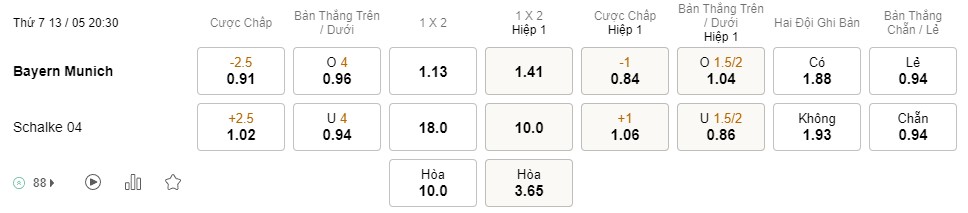 Soi kèo hiệp 1 Bayern vs Schalke: 0.84*1*1.06