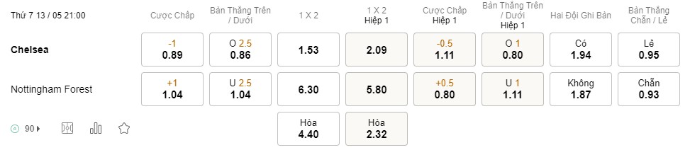 Soi kèo hiệp 1 Chelsea vs Nottingham: 1.11*0.5*0.80