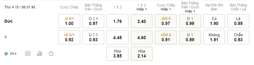 Soi kèo Châu Á Đức vs Ý: 1.00*0.5/1*0.92