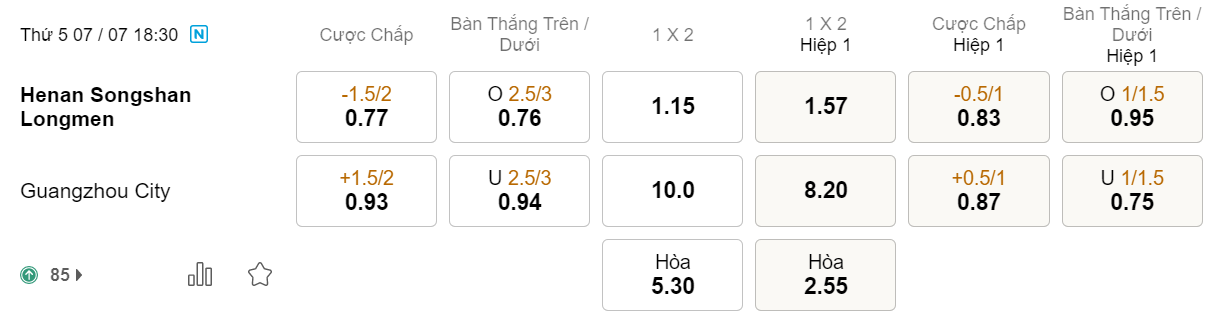 Soi kèo châu Á Henan vs Guangzhou City: 0.77*1.5/2*0.93