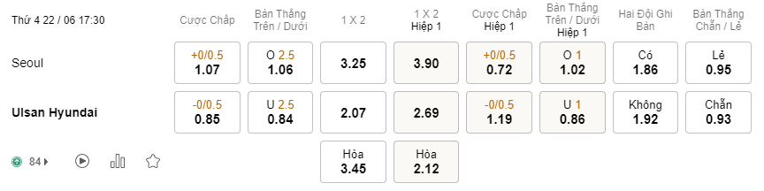 Tỉ lệ kèo Seoul vs Ulsan Hyundai
