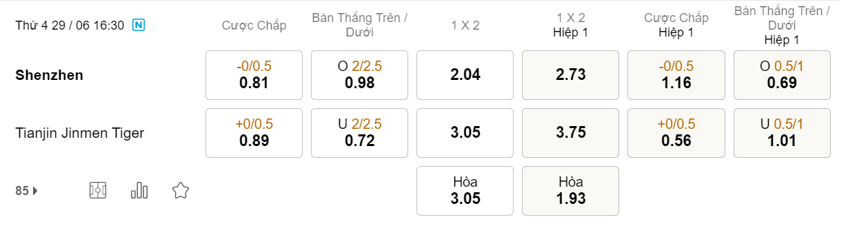 Soi kèo tài xỉu Shenzhen vs Tianjin Tiger: 0.98*2/2.5*0.72